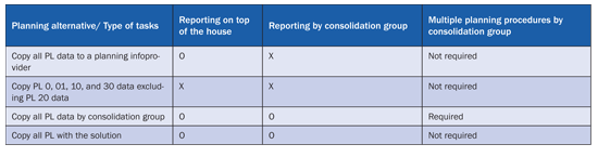 Companies that have implemented SEM-BCS and BW-IP or SEM-BPS often try to use workarounds to deal with the issue related to the elimination entry records (posting level 20). For instance, corporate planners copy actual data only with posting level 0, 01, 10, and treat all intercompany transactions like the transaction with third-party companies, or they copy data multiple times by consolidation group and do planning processes parallel by consolidation group.