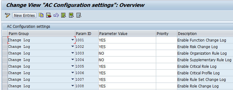 Trick: One of the parameter groups in the Maintain Configuration Settings IMG node is the change log (Figure 17) that you can access via menu path SPRO > SAP Customizing Implementation Guide > Governance, Risk and Compliance > Access Controls > Maintain Configuration Settings. It allows you to activate (or deactivate) change log collection for different objects. The capture of change logs for objects (for example, role) is controlled by parameter 1008 (Enable Role Change Log). This parameter has to be set to Yes to capture changes made to roles.