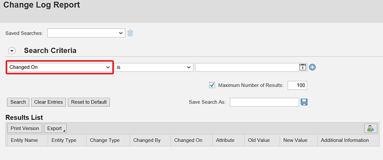Access the change log report by following menu path Reports and Analytics > Audit Report > Change Log Report (Figure 21).