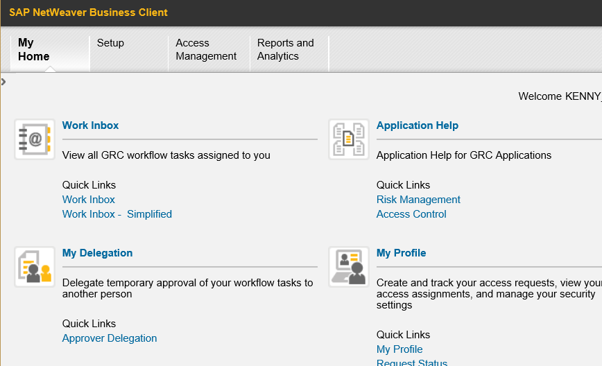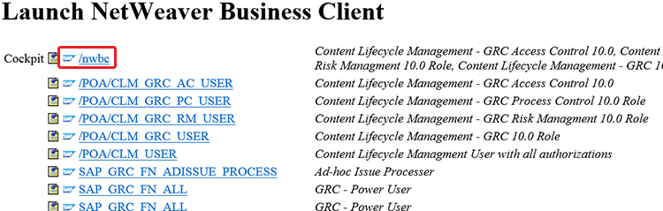 Deactivating the NWBC_LAUNCH node takes away the additional click effort to choose the /nwbc cockpit before getting to the GRC 10.x work center. This can significantly improve the user experience.