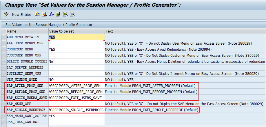 Furthermore, an important prerequisite for risk terminator is the post-installation activity associated with the maintenance of user exits in the back-end system (Figure 28). You access it via menu path SPRO > SAP Customizing Implementation Guide > Governance, Risk and Compliance (Plug-In) > Access Control > Maintain User Exits for Plug-In Systems.