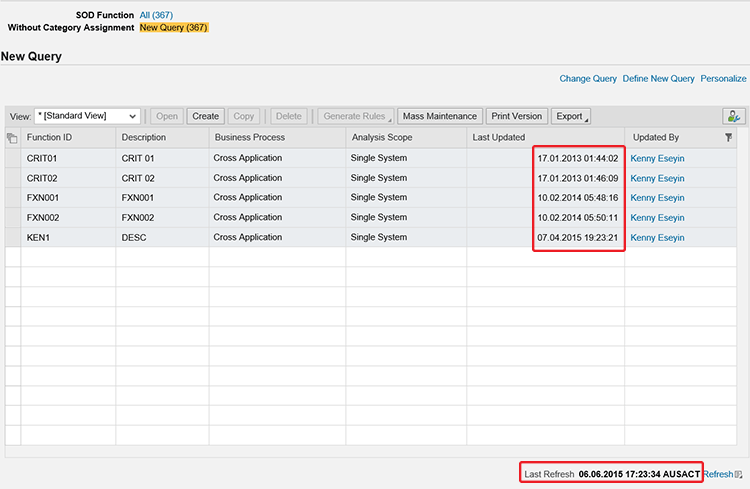 Changed On column of the Change History tab showing the SAP Access Control server time zone