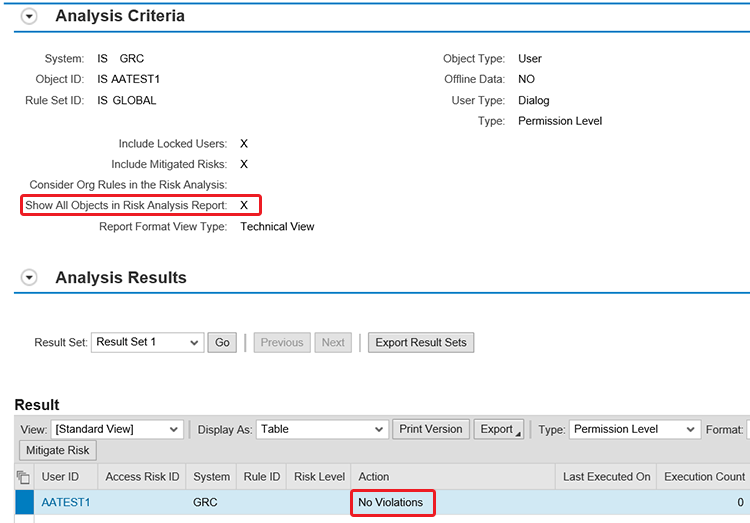 Myth: When you run risk analysis for objects without a violation, you should always get the message No Violations.