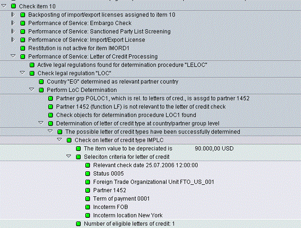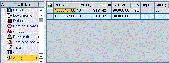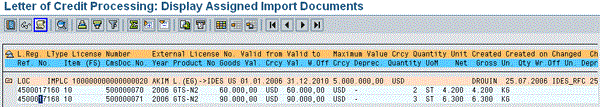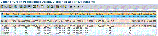The system displays a list of all documents assigned to the letter of credit defined in the system (Figure 3). It gives you information about the products and documents assigned to letters of credit. You can use this list to validate whether the correct letters of credit are assigned to your SAP ECC documents.