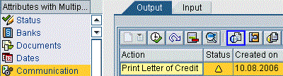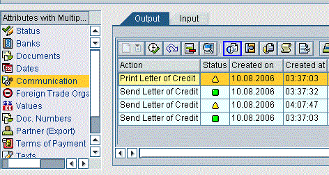 Click the Communication node in Figure 8 to see the status of the letter of credit data. For example, the successfully sent data is shown with a green light (Figure 8). This also allows you to monitor the messages that have been electronically sent to you.