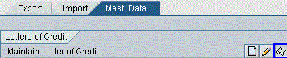 Then create a delivery and a billing document in the feeder system. Go back to the SAP BusinessObjects Global Trade Services cockpit and click Letter of Credit Processing again. Click the Mast. Data tab to display the existing letter of credit (Figure 4). Click the display icon to display the corresponding letter of credit (Figure 5).
