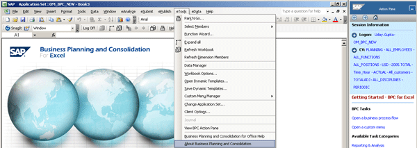 One way is to log on to Microsoft Excel for SAP BusinessObjects Planning and Consolidation, and follow menu path eTools > About Business Planning and Consolidation (Figure 1). This produces the pop-up screen shown in Figure 2.