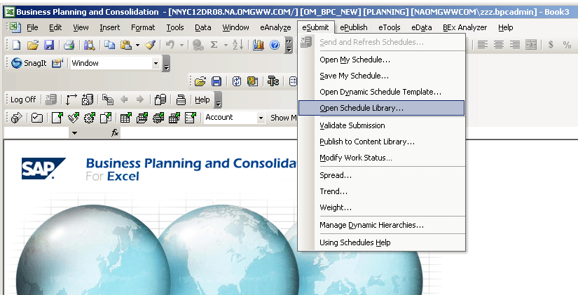 To determine the number of input schedules being used, follow eSubmit > Open Schedule Library… (Figure 12). Based on your folders, count your schedules (Figure 13).