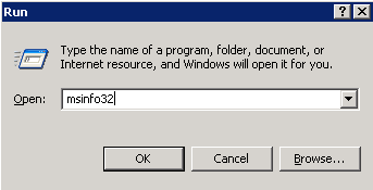 You also need to be aware of information on hardware for both database and application servers for SAP BusinessObjects Planning and Consolidation. You can obtain this information directly from the SAP BusinessObjects Planning and Consolidation server. After you have logged on to the server, go to Start > Run, enter msinfo32, and press Enter (Figure 14).