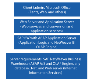 Figure 6). Note that there is an ABAP Application Server and connectivity to the Business Warehouse Accelerator (BWA), previously known as BIA, which is the equivalent of a load-balancing version of the SAP BusinessObjects Planning and Consolidation 7.x, version for Microsoft. Most important, in
