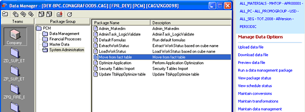 Select Manage Data > View package status in SAP BusinessObjects Planning and Consolidation to see the SSIS package status in the data manager (Figure 15).