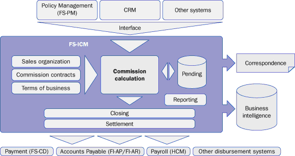 SAP Incentive and Commissions Management (ICM) addresses the integration and management of the sales force. In addition, ICM automates some processes and helps tackle issues common with incentive and commission programs, such as implementing new global incentive programs and setting up multiple programs and products under a single compensation plan. With ICM you can pay partners through different payment systems — such as Financials Accounts Payable (FI-AP) for external partners and HR Payroll for employees — using the same process.