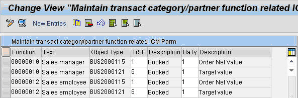 The subobject types dictate the calculation parameters that have been set up in the ICM engine settings. Then map the partner functions to other ICM decision parameters (Figure 11). Go to Customer Relationship Management > Incentive and Commissions Management > CRM-ICM Transfer of CRM Documents to ICM node. The basis for calculation could differ based on the transaction category and the transaction step. The compensation program and the customer business scenario define this.