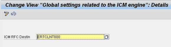 Initial setup begins with the Remote Function Call (RFC) connection setup. This ensures connectivity between ICM and SAP CRM. In the SAP CRM IMG, follow menu path ICM Configuration > ICM Engine > Global Settings. Enter the SAP CRM destination as shown in Figure 8.