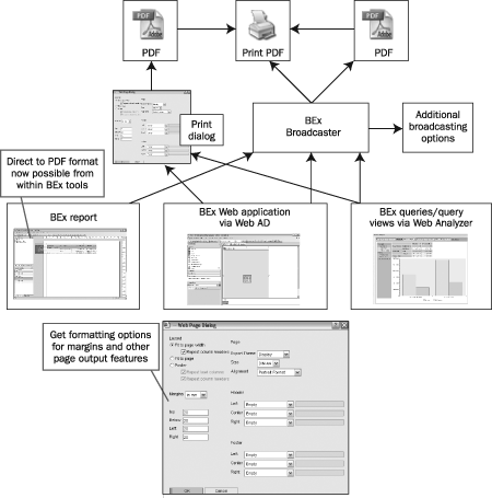 Create Adobe PDF output of BEx queries or query views directly from the BEx Web tool or indirectly via Information Broadcasting