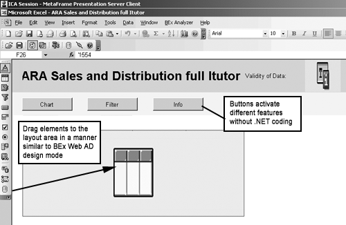 The improvements to this Excel-based interface focus on how you design workbooks, making the design similar to that of a BEx Web application. The features are best divided between design mode and analysis mode.