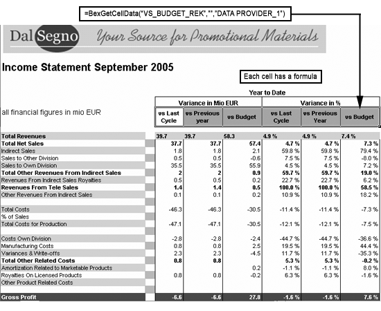 Besides the general layout options afforded by the new design methods, you can automatically and uniquely assign Excel formulas to every data cell. You have dedicated formatting options for each cell that are similar to the options included in the new BEx Report Designer. Figure 6 shows some formatting possibilities. With these capabilities you may not need to use third-party formatting tools.