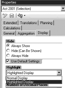 First you need to modify the style associated with specific cells or structure elements (e.g., rows or columns) using limited SAP NetWeaver BI query settings. This step involves setting the key figure properties to Highlighted Display (Figure 1), which I explained in the first article of this series. The Highlighted Display setting changes the selector, and thus the default format that the portal theme applies to the HTML code. This alters the underlying CSS class assigned to this key figure. Subsequently, you can change the actual output format in the Web by adjusting the defaults for this style (via themes in step 6).