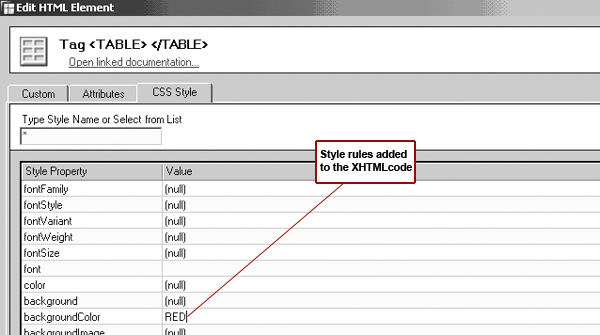 However, with a little knowledge of CSS syntax, you can apply the rules directly to the XHTML code in Web AD’s design screen (e.g., style = “BACKGROUND-COLOR: red”), as shown in Figure 6. To learn more about the CSS syntax options, refer to https://w3schools.com/css/css_reference.asp.