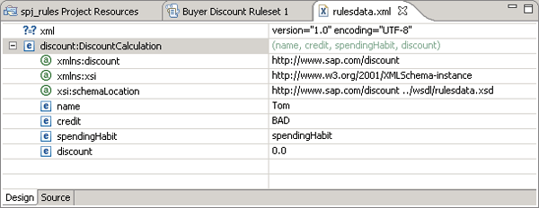 A new tab has been added to the Ruleset Editor named Test Scenario. You can immediately test your rules directly within SAP NetWeaver Developer Studio. To create the XML file, switch to the Test Scenario tab and click the create XML icon in the upper-right corner of the tab. The Create XML dialog opens asking you for an XSD to select. As you’ve imported only one XSD file, just select the entry shown in the list and click the OK button.