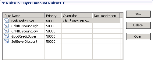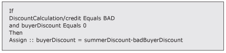Let’s take the example displayed in Figure 6 to explain more details. In this figure, rule BadCreditBuyer overrides rule ChkIfDiscountLow. The consequence of this setting is simple to explain: If the conditions of both rules are evaluated to true in the same evaluation phase, only the BadCreditBuyer rule is added to the firing queue.