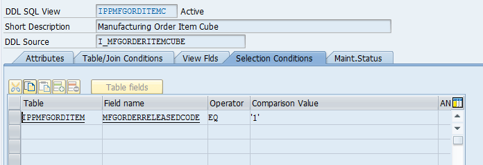 Selection Conditions details of view IPPMFGORDITEMC