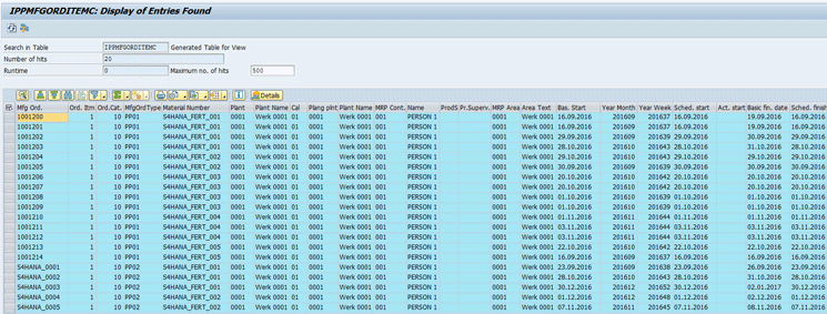 Data retrieved by the CDS view Manufacturing Order Item Cube