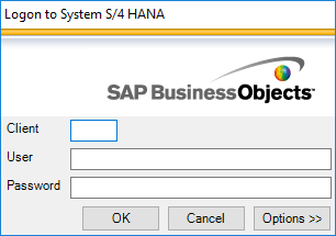After the selection of the desired system, you are prompted to input the client, user, and password to log in to the system, as shown in Figure 9. After you enter this information, click the OK button.