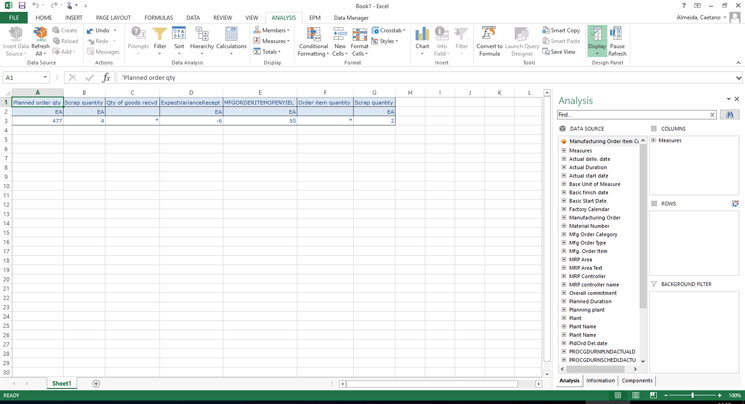 Learn how to use the SAP BusinessObjects Analysis integration with SAP S/4HANA to see manufacturing reports directly in Microsoft Excel.