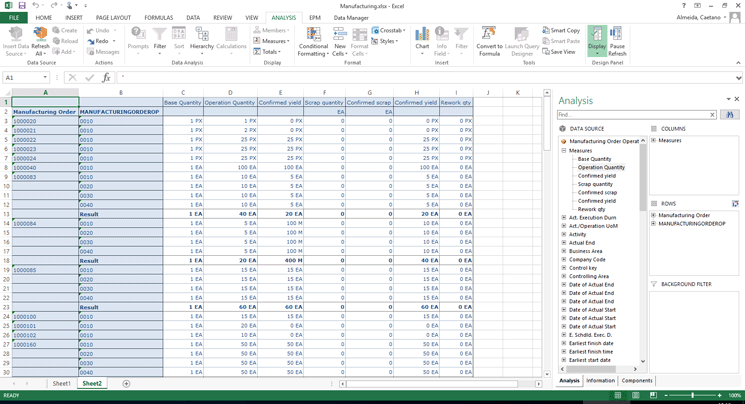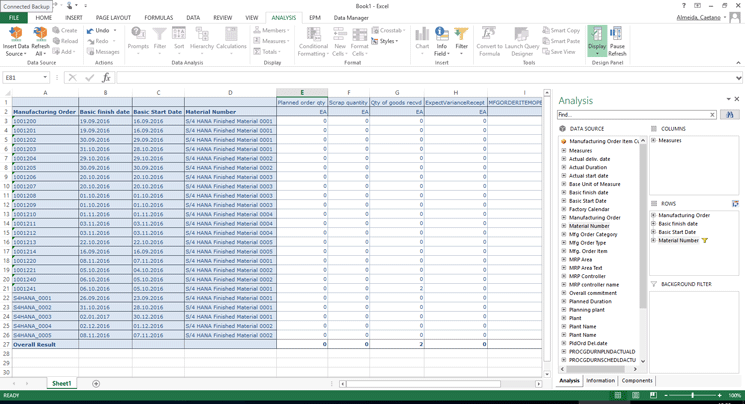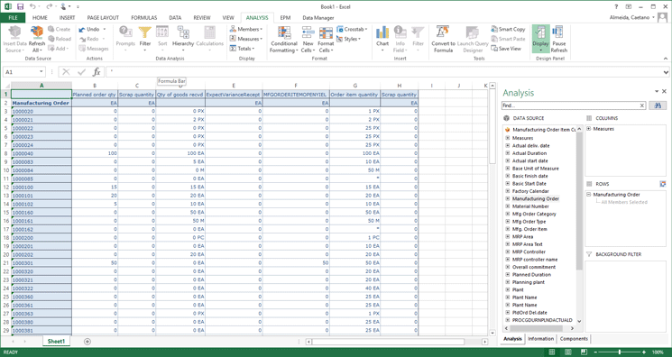 With the SAP BusinessObjects Analysis you can have the production order data in Microsoft Excel extracted directly from the SAP HANA database. It means that a confirmation posted into a production order will be immediately reflected in Excel and the business users will be able to take decisions effectively, based on live data.