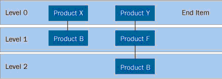 Through the LLC process, the system determines the lowest level at which a product can be located in a bill of materials (BOM). This process is required to execute the planning process in the correct sequence. For instance, in the example shown in Table 2, product B has the LLC=2 because it is at the lowest level in the BOMs of product X (level 1) and Product Y (level 2).