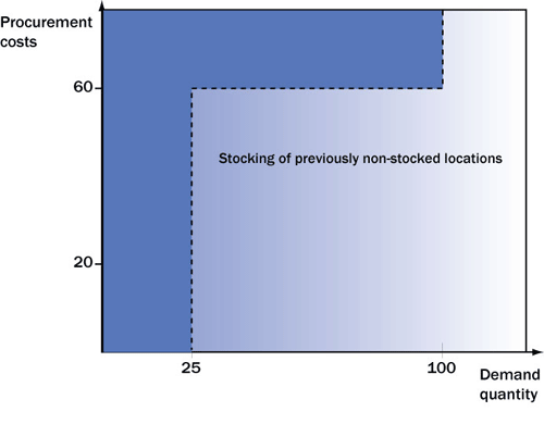 The decision whether a service part is stocked or not stocked usually depends on the demand and the procurement costs. A simple example for a decision rule for stocking and de-stocking is shown in Figure 5.