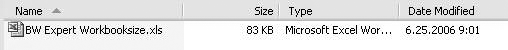 Next, save the workbook on your local drive, which has the same effect as saving to the BW server. Check the size by displaying the file in your Windows browser in the detail view (Figure 2). As you can see, my actual test file size is 83 KB.