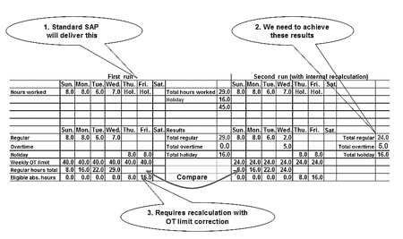 SAP R/3 calculates weekly overtime analysis
