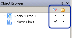 Currently your dashboard allows you to select between a view by product or by calendar month. In the next steps, you add another chart, so you should hide the current chart to avoid too many elements on your canvas. Go to the menu View > Object Browser and select the option to hide the chart from your canvas (Figure 8).