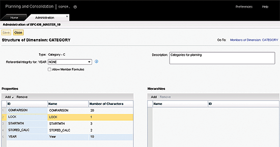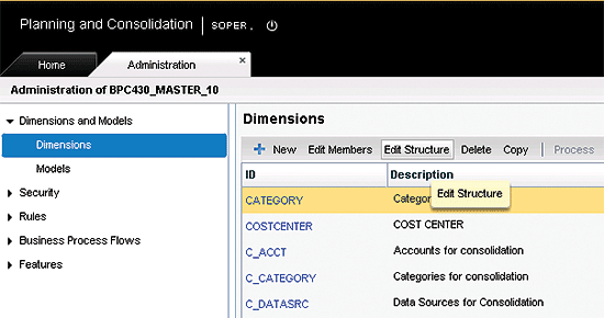 Now click Planning and Consolidation and then click the Administration tab. Click Dimensions and then select Category (Figure 27).