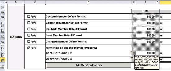 To select a member property, click the Add Member/Property button. The EPM formatting sheet for member/property appears (Figure 33).