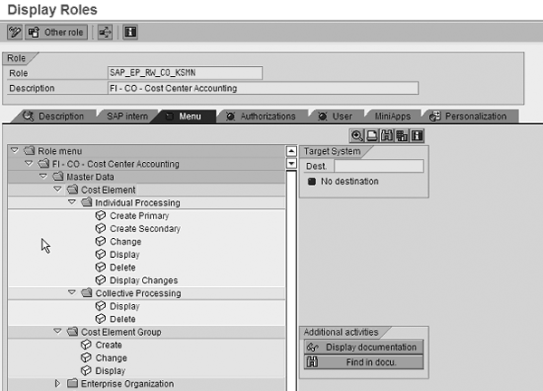 SAP enhancement package 1 for SAP ERP 6.0 (SAP NetWeaver 7.0, SP 11) includes more than 300 automatic roles that take the area menus for each application (such as area menu KSMN for Cost Center Accounting [CO-OM-CCA]) and create a role for this application (such as role SAP_EP_RW_CO_KSMN for CO-OM-CCA). To find out which automatic roles are delivered, read SAP Note 1000291, which SAP modifies as it adds new roles with each enhancement package. I use role SAP_EP_RW_CO_KSMN as my example, because this is an area of Financials that should be familiar to everybody. The same options are delivered for Accounts Payable (AP), Accounts Receivable (AR), Asset Accounting (FI-AA), and so on. You can copy these roles and use them as a starting point for your own role design.