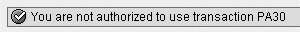 In my example, user TESTUSER logs in to the system and runs transaction PA30 (maintain master data). However, because TESTUSER does not have the appropriate authorizations in place, SAP ERP generates an error message (Figure 1).