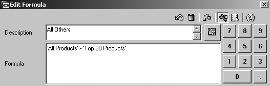 Then create a formula in the Rows section called All Others (Figure 8). All Others is the difference between the selection of All Products and the selection of Top 20 Products. It is the last step of the query creation and gives the user an idea of the total sales of the remaining products without showing the product details.