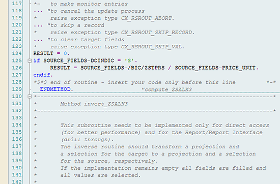 The code for this routine is shown in Figure 40. Click here to download a copy of the 0ISSVALSTCK routine code. Put this code in the 0ISSVALSTCK InfoObject routine (Figure 41).