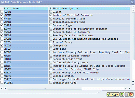 Now, mark the boxes to the left to select the fields you need to populate and show in your report. When finished, click the copy button (Figure 3). Continue in a similar manner with the other two tables.