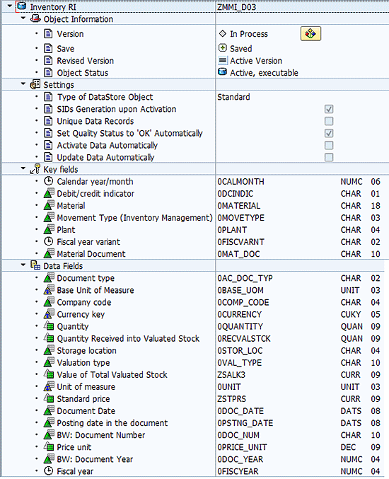 DSO ZMMI_D03 extracts the data for RI from Inventory Movements DSO ZMMI_D01. For now, let’s use the same structure as ZMMI_D01.