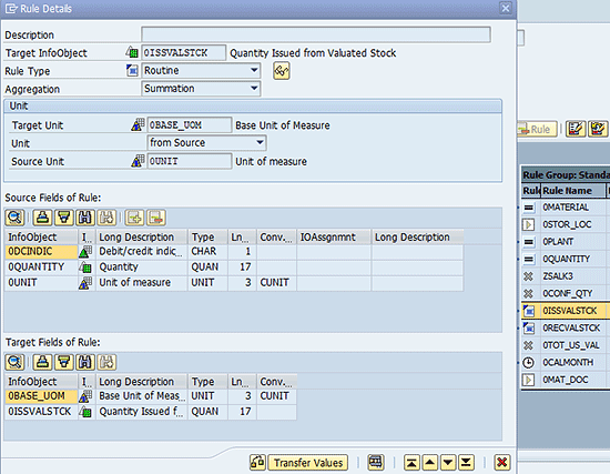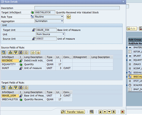 Next, create a routine on Field 0RECVALSTCK; credit/debit and quantity are linked to this InfoObject (Figure 42).