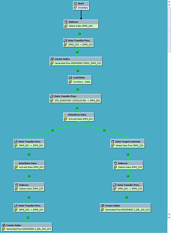 Figure 49 shows the complete process chain for our inventory DSOs and InfoCubes.