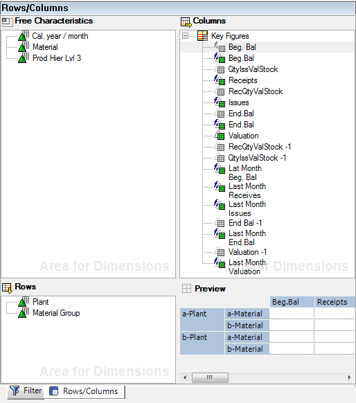 In comparison, my method creates a MultiProvider and has written a report on this MultiProvider that shows beginning month stock, quantity receipts, quantity issues, valuated stock, and ending balance. This report presents prior month information, and executing it takes about 15 seconds.