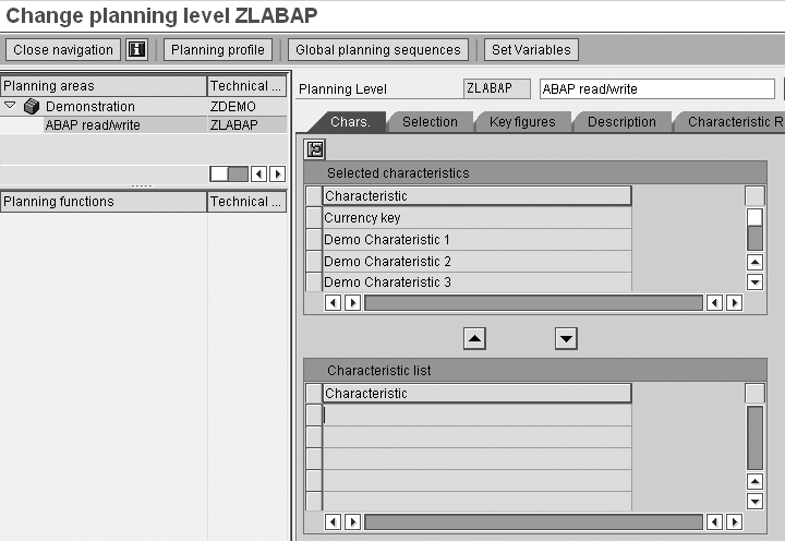 Step 2. Create a planning level. Right-click on the planning area ZDEMO and select the Create Level option. Name the planning level ZLABAP. The description could be anything, but for example purposes I have chosen ABAP read/write. Click on the Create button to see the screen in Figure 4.