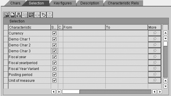 In the Key figures tab (Figure 6), select all key figures from the Key figure list and move those to the Selected Key Figures area. In this example, I selected Amount and Quantity.