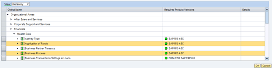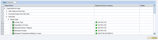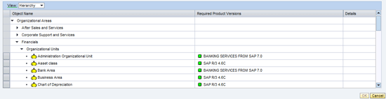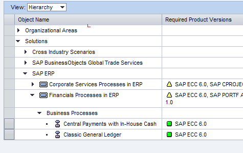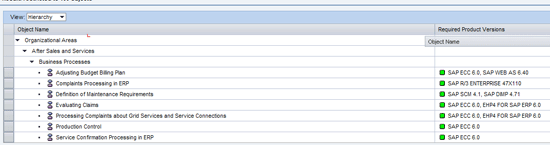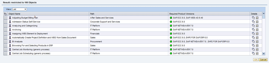As with organizational units, the Path column groups the list by functional area. Also, as with organizational units and business processes you can view the results as a list (as in Figure 19) or in a hierarchical view (as shown in Figure 20).