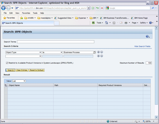 A browser window opens, showing the Search BPR Objects main screen (Figure 3).